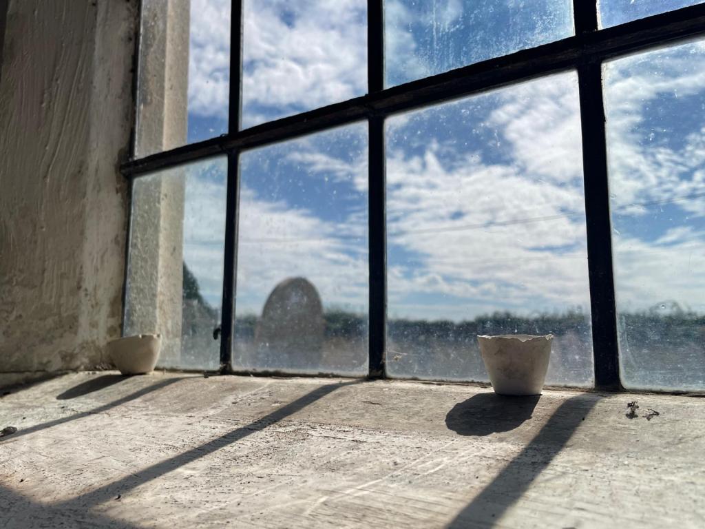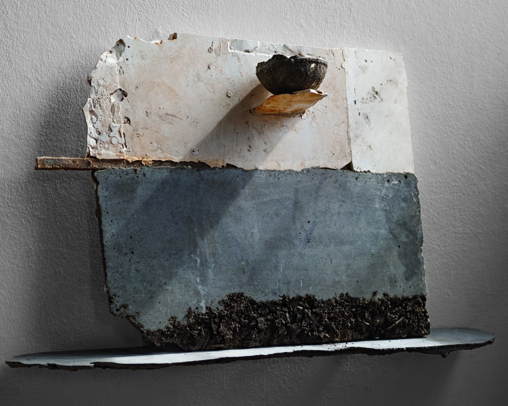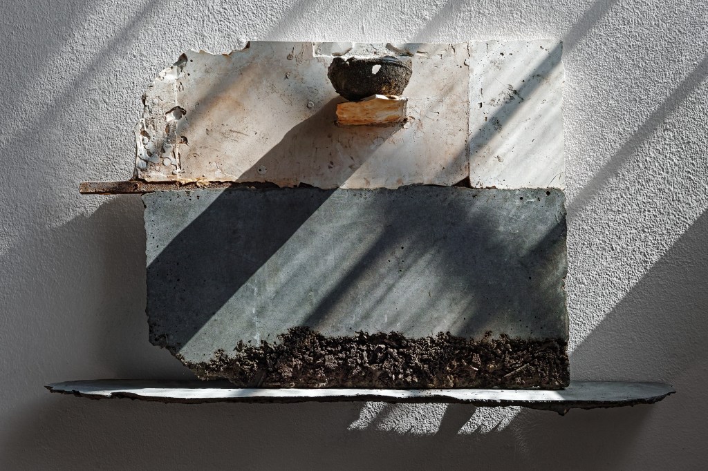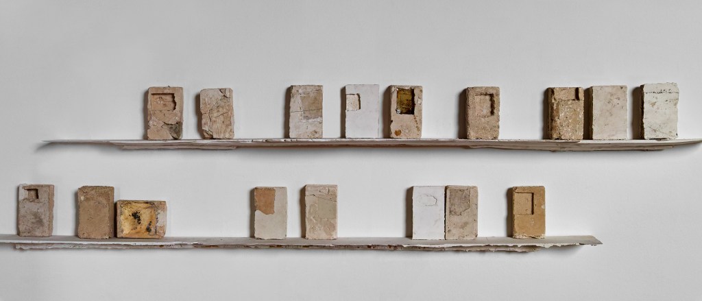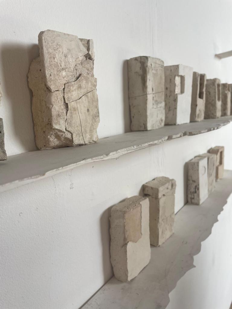 In 2021 I started making work for an exhibition in this church. I began to see a link between my practice and the walls of this church. For a decade or more I had been setting images and rusted metal into plaster blocks. These blocks had a similar material quality to the walls of the church. The wall painting was once part of something much larger, that larger part still exists but has been buried under layers of plaster and limewash. I thought that something else exists within these walls, a human presence, not visible, but present. Moisture from our speech, our hands and heads, carrying our DNA, circulating in currents and setting into the wall surface. I read a journal about Fetal microchimerism, the discovery that cells within a baby live on within the mother long after childbirth. Another instance of a human presence being embedded without it being visible. I wanted to work on this idea of human traces being present within material. Increasingly, I felt that the material was enough in itself to communicate this idea and that I no longer needed drawings or photographs.